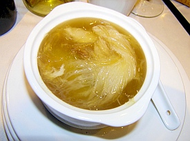 子燉排翅、清炒蟹粉、筍乾千層肉和法國鵝肝炒飯,其次是蜆肉煮乾絲。開始第