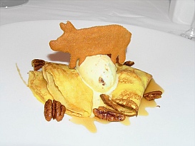 雪糕加焦糖威士忌汁(Maple Pecan Crepes with Warren pear, carmelized bacon