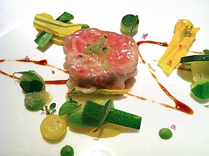 Garden Carrots & Sea Urchin, Curry)、甘草包住的鴨潤加上乾櫻桃(Foie Gras