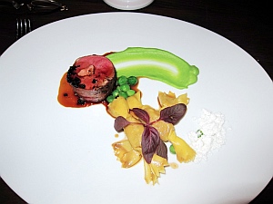 汁Lacquered Foie Gras,第(4)釀乳鴿、用鴨肝粉、焦糖及法國Perigord風味