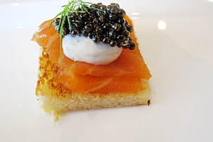 Chardonnay莎丹妮白酒;hours d'oeuvres點心更為豐富,先後端來十幾款,我們